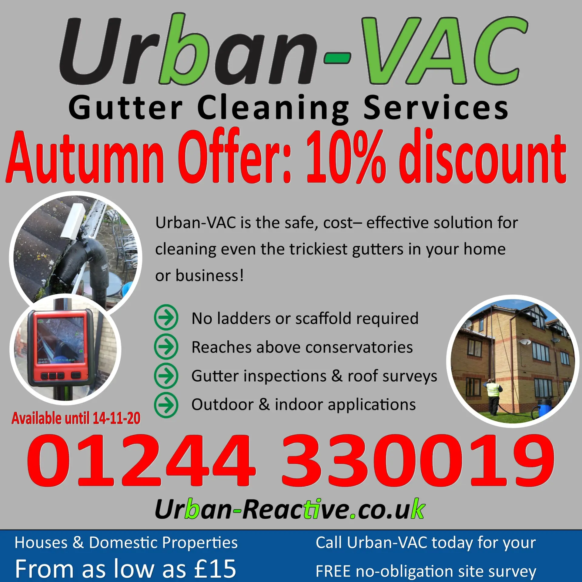 Get 10% discount of your Urban-VAC gutter Cleaning We are working in these difficult times and practising social